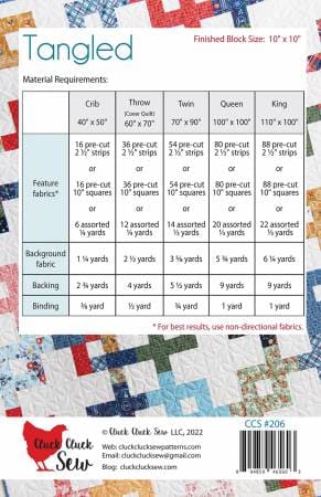 Cluck Cluck SewOriginal price $14.90 - Original price $14.90Original price$14.90$14.90 - $14.90Current price $14.90| /Tangled is a beginner friendly pattern that includes Crib, Throw, Twin, Queen, and King sizes. It can be made with pre-cut 2 1/2" strips, or pre-cu...