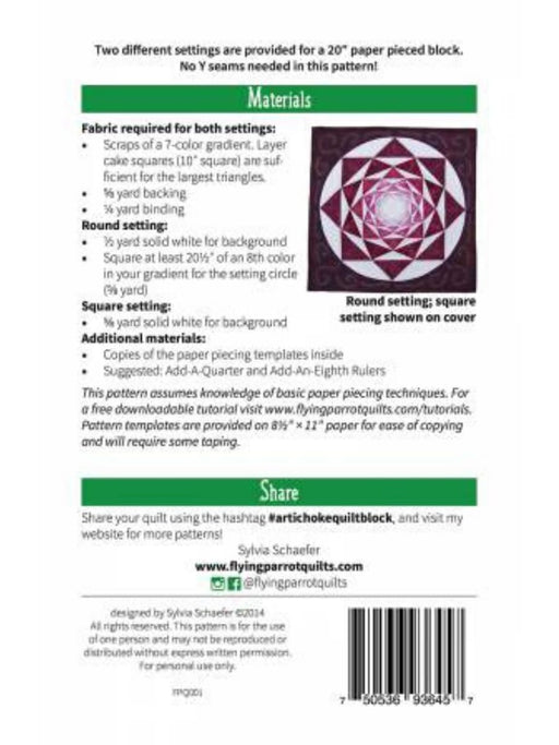 Flying Parrot QuiltsOriginal price $16.90 - Original price $16.90Original price$16.90$16.90 - $16.90Current price $16.90| /mini quilt block20" paper pieced block The Artichoke is a foundation paper pieced mini quilt/block pattern that finishes at 20in square. No Y-seams...